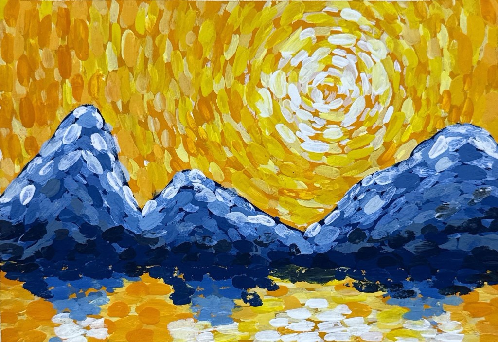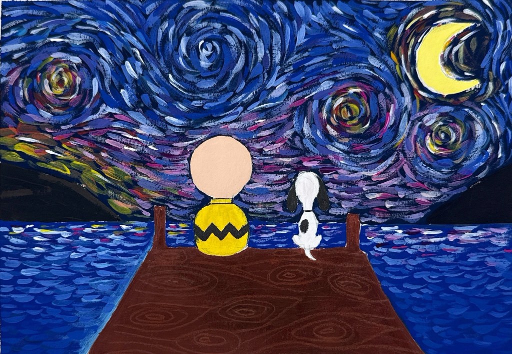 To meet the Ontario Curriculum’s requirement for cumulative practical tasks, I asked my students to recreate one of their major projects from earlier in the year, using the same techniques but with a new subject or vision. Many chose to redo their movement project, originally inspired by Van Gogh’s Starry Night.